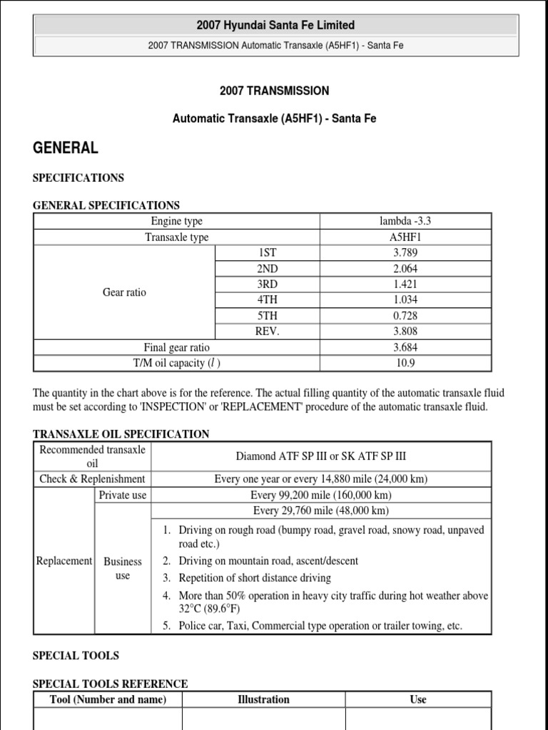 2004 Hyundai Santa Fe Recommended Synthetic Oil And Filter